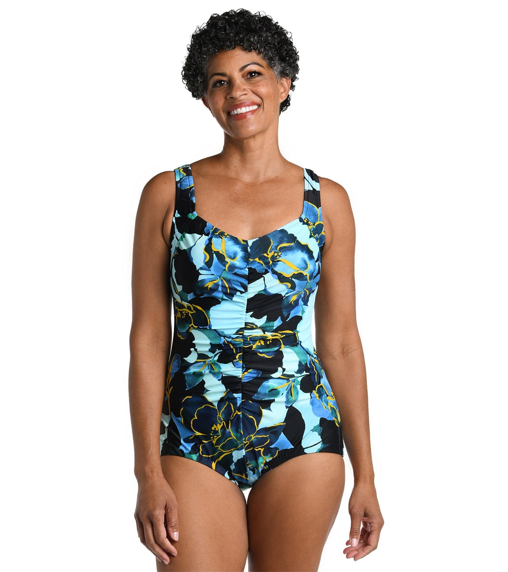 Maxine Women's Moonlit Garden Shirred Front Girl Leg One Piece Swimsuit at SwimOutlet.com