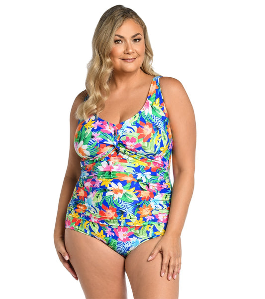 Maxine Women's Plus Size Hula Holiday Twist Front One Piece Swimsuit at SwimOutlet.com